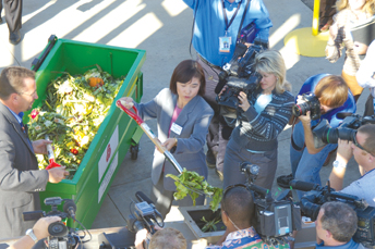 张瑞红教授把第一铲垃圾送进她所研制的厌氧分级干式发酵系统,成为加州新能源希望的聚焦点。这些以残羹剩饭等废弃物为主要成分的垃圾就转化成为可以驱动汽车和发电的甲烷气、燃料电池所需要的氢气和农作物所需要的有机肥料。也就使得废品完全变成了“宝”。