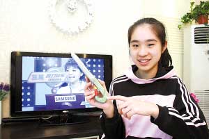 昨日,丹丹向记者演示了它的使用方法,只见她按一下手动磁铁开合处,再按一下遥控板按键,就能实现自由换台等操作。