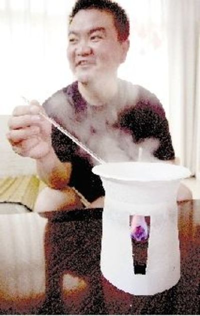 金治权说,他在纸支架内涂了一层阻燃剂,在加热纸碗下涂了一层防火的涂料。