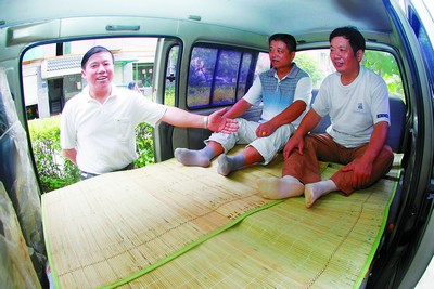 王敏卿(左一)在展示他发明的“汽车床”。石祯专摄 本报讯(记者 石祯专)只有小学文化的王敏卿最近心情格外舒畅,国家知识产权局新近给他颁发了“微型客车商务轿车轻型客车三人睡汽车床”实用新型专利证书,意味着他“捣鼓”了3年之久的汽车床技术终于“修成正果”。