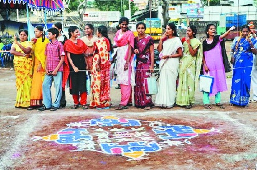 在南部印度马哈巴利普拉姆小镇,每逢过节,家家户户门前的地上都会被主人用彩色粉末画上各种花卉图案的地画。这些地画色彩鲜艳,图形优美,很喜庆,也很独特。 据说,起因是当地蚂蚁十分猖獗,任何食品放置家中,哪怕是悬挂在墙上,只要蚂蚁侦察到,就会顺着墙上去吃个精光。过去,为了不影响过节的好心情,节前,人们干脆把少量的面粉或米粉铺撒在自家门口,这样,贪婪的蚂蚁们就会被拦截在门前的面粉或米粉里,而屋里的食物则保住许多。
