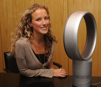 不知道还以为这位女士正在照镜子呢,其实这就是新型无扇叶的“戴森空气倍增器”
