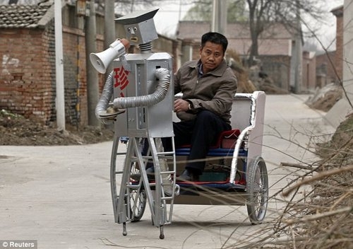 据英国《每日邮报》报道:“全中国最聪明的农民发明之星”吴玉禄将带着自己制造的30多个机器人参加 2010年上海世博会。这一消息一经传出,立刻在海内外引起了广泛注意,世人都期待着他能在此次世博会上亲眼目睹他的机器人。吴玉禄现年48岁,他最得意的一件作品是用废旧金属制作的黄包车机器人,吴玉禄把他的这款黄包车机器人命名为“吴老三十二”,还给它设置了程序使其 在行走时可以说出:“我是拉洋车的机器人,吴玉禄是我爹,现在我拉我爹去逛街,谢谢!”吴玉禄从小就对机器的运动很有兴趣,当刚会走路时就很希望能制造出机器。目前,他发明和制造了大大小小不同功能共47个机器人,这给他带来了各种荣 誉和丰厚的回报。他已被邀请并将带着自己制造的30多个机器人参加2010年的上海世博会,在世博会他将为自己的机器人拓展销路。此外,他还收到很多大学 的奖励和讲学邀请函。