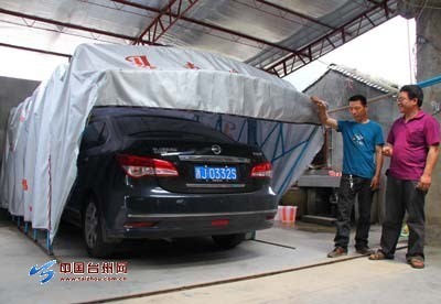 玉环县龙溪乡大密溪村农民徐传友,耗用近一年的时间,研制出防霜、防露、遮阳、防尘的移动式车库,还获得了国家实用新型专利;目前,他的产品已成型,准备批量生产投放市场。