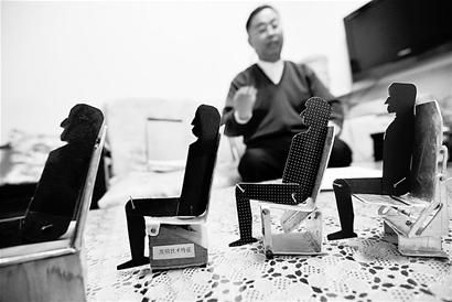 戴贵柱又给记者看了两个座椅模型,说:“一个是我的第三项发明,它通过椅面前移解决了空间排列问题,通过角度倾斜解决了舒适问题;另外一个是我的第四项发明,它在第三项发明的基础上让椅面可折叠,方便了周围旅客的进出。”