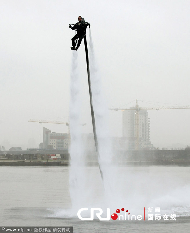 这款名为Jetlev-Flyer的新型推进器拥有强大的单引擎,可以通过机体下方的特制水泵推动飞行器以22英里(约35公里)的时速悬浮在高约30米的空中。