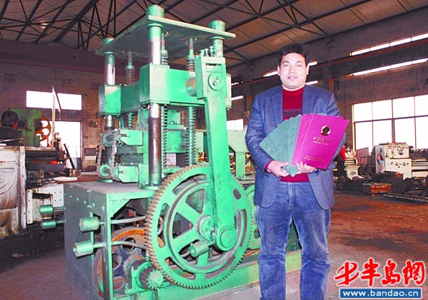 曹月伟告诉记者,他初中毕业后为了谋生活,17岁便离开家乡去大连打工。刚开始干建筑,从小工干到架子工,再从架子工干到机械工,最后成了工地的安全员。正是机械工和安全员这两个工作让他有了接触机械的机会。“当时主要是学技术管安全。”曹月伟说,在大连打工的10年时间里,他学到了很多机械方面的知识。26岁的时候他回到了莒县长岭,开了一家机械修理厂。在不足10平方米的修理厂里,他研制出自动制瓦机并申请了他的第一项国家专利。