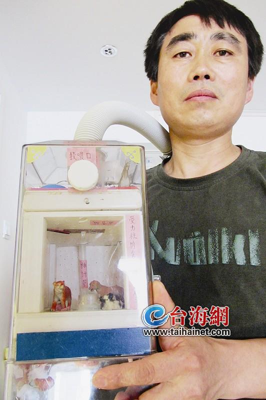 隔壁养着宠物,一到季节就大换毛,不仅狗毛顺风飘,宠物粪便随处见,还有股难闻的味道让人心烦不已。这样的尴尬不在少数,但也许用上老郝的小发明“饲宠阁”就可以解决了。 在明发广场开奢侈品店的老郝,发现最近几个月顾客少了许多。出门一转,他发现“罪魁”是自家店铺周围的多家宠物店,“那股味道一吹,30米内谁都不爱靠近”;而且夏季宠物犬换毛,经常有狗毛飘到老郝店里,沾到名品包上,让老郝心烦不已。养过狗的老郝想着发明一个干净的宠物饲养空间,他给它起名为“饲宠阁”。在老郝的设计里,这个“饲宠阁”占地2平方米,高2米。最顶上是一根开着排气扇的管道,周围是有机玻璃。老郝巧妙地设计顶棚用两根钢管支撑,其中一根钢管用来做宠物“诱便柱”,四周就是宠物大小便槽,按一下按钮,金属条竖起来,宠物粪便就掉到处理池去了。还有一根钢管是通水的,把水输送到水箱里,用来冲水,“在这个饲宠阁里,确保一点味道也不会飘散开”。