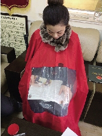 一个下雨天,同学们都穿上雨衣来上学,任浩楠看见有些同学的雨衣是透明的,突然来了灵感。其实,可以在理发围布前方开个口,缝上透明的塑料纸,这样就可以通过这个“透明窗口”看书、玩手机。“姐姐也觉得我的想法可行,我们将店内一件理发围布前端胸口至膝盖处开口缝上了透明塑料纸,手拿着手机和杂志放在布内,在布外看得清清楚楚。”任浩楠说。