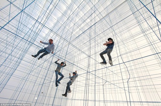 该设计团队表示,人置身这样的攀爬网格之中,会减弱对空间及方位的辨识能力,产生无限空间的错觉。 据悉,这个立方体充气后,所有绳索会绷紧,足以支撑成年人体重。别看立方体体型巨大,收藏却十分简便,只要将空气放走,即可连同绳子一起折叠起来。