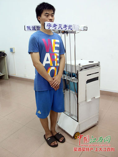 “哈哈,一些网友的评论我也注意到了,其实这个机器人主要是作为老师的考场助手,不可能完全替代监考老师。”李亚博笑着说,下一步他准备加入“指纹打卡”功能,平时上课前,学生在机器上输入指纹。这样老师不用点到,上完课查看系统,就能知道哪位同学没来上课。