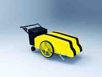 昨天,殷赵云向记者展示了自己发明的清扫“神器”:黄黑相间的一辆两轮手推车,手柄可上下调节,普通成年人都可操作。操作者只需推着车前进,车头两个圆盘就会向反方向转动,从而把地上垃圾推挤到中间,再靠后面的滚筒转动,把垃圾运上传送带,最后送进垃圾车的装置箱里。
