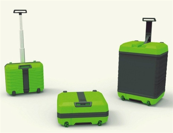 现在给大家介绍的这个三合一旅行神器比较实用。使用ABS材质制作,具备防水、耐撞击的特性,折叠使用时仅为轻巧便携的20寸拉杆箱大小,在有需要时,便可利用电动空气泵将内置的折叠壁展开,即可扩张为一个40x50x75厘米、3倍大的行李箱。另外,可以随意变成笔记本电脑桌、梳妆台实用。