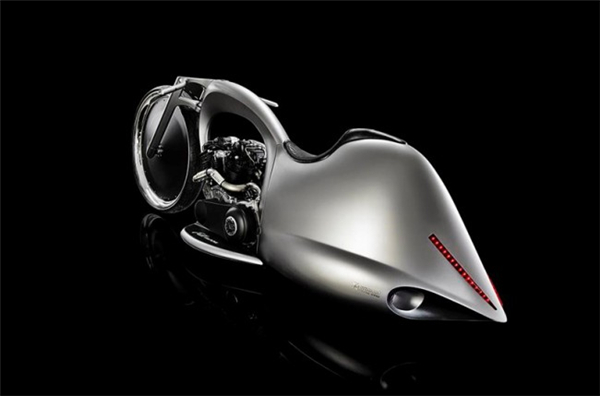现在给大家上来一款非常牛X的「满月(Full Moon)」概念摩托车。铝合金和碳纤维共同组成了全所未有的30英寸庞大前轮 ,而这满月形状也正是摩托车的名字来源。除此外,它还拥有S & S出品的1524cc排量发动机和两个Akrapovic定制排气管,之所以提到排气管,是因为整个框架和车身都由金属冲压而成、并直接形成排气管,所以实际上,整个车身的本质就是一个排气管。