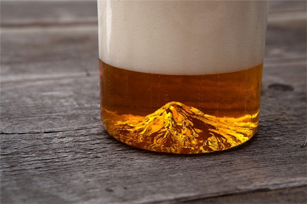 North Drinkware团队采用美国地质调查局获得美国俄勒冈州最高的山峰的地形数据,将其转换为3D模型,复制出这样一个棱线分明的山峰啤酒杯,当你导入啤酒的时候,那啤酒的颜色映在山峰上。是不是很美好?