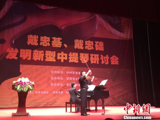 4月29日,甘肃省文联在兰州召开“戴忠基、戴忠础发明新型中提琴研讨会”。图为沈阳音乐学院中提琴教授韩继光用戴氏兄弟发明的新型中提琴演奏。 徐雪 摄 中新网兰州4月29日电 (徐雪)4月29日,甘肃省文联在兰州召开“戴忠基、戴忠础发明新型中提琴研讨会”。