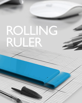 来自Park Chan-ju和Lee Hwa-yeon带来的滚动尺,Rolling Ruler,这把尺子改变了惯常的平面单层结构,仿照坦克的履带滚动的原理,外观仍保持15cm的总长,轻推尺面,想画多长就能画多长,滚动尺上只有刻度,没有数字的累计标识,但每5cm会有一个明显加长的标记。数一数就能直到长度了哟!