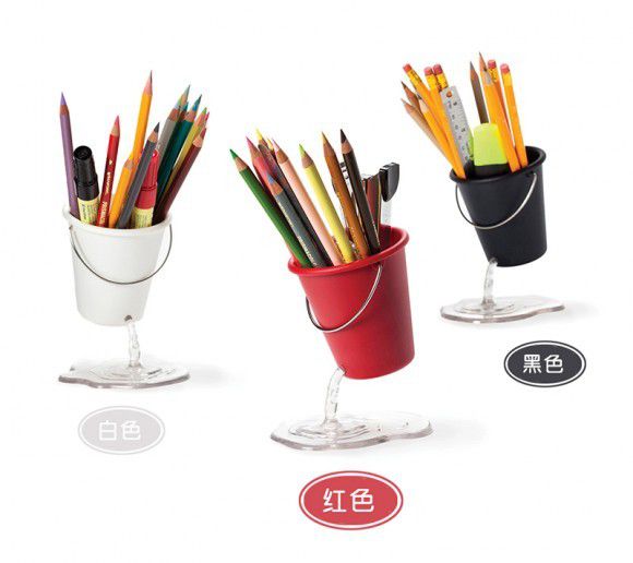 以色列Pelegdesign Desk Bucket创意笔筒,简易的纯色小桶再配合透明底座,使得小桶像添加了一些魔法而悬浮在你的桌子上,经典的白、红、黑三种色彩使之可搭配任何书桌,它可以让你平时所用的笔、尺子等“悬浮”在空中。自此办公桌上有了它,使你的思绪更加空明,并且它可以更好的整理你的工作空间。