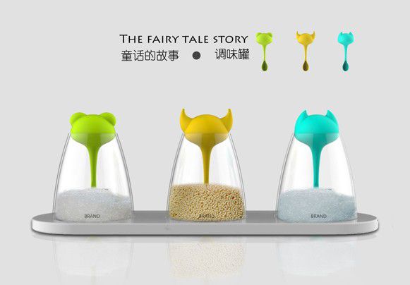 这是由设计师黄泽鸿设计的一款可爱调味瓶,瓶盖和勺子相结合使使用起来更加的方便勺子整体造型是三个可爱的动物使整个产品好用的同时更有趣。