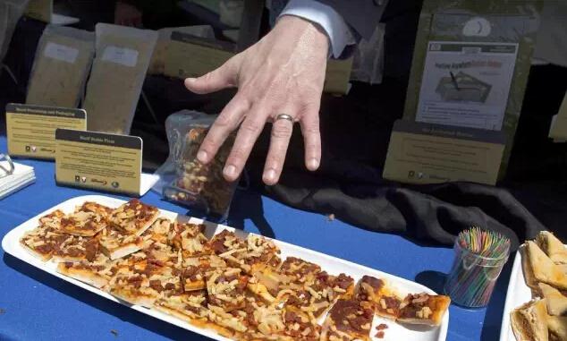 腾讯科学讯 五角大楼近日举办“实验室日”,对公众开放新型装备,大部分是正在研发中的产品。其中传说已久的军用披萨亮相。披萨是美国大兵们非常钟爱的军队食品,但由于番茄酱和芝士容易变质,士兵们将披萨引入战地成为口粮的愿望从未实现过。