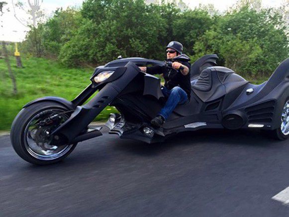这是一款炫酷的蝙蝠侠的战车,有没有爱上它?波兰一家改装车商店推出了他们定制的新款蝙蝠战车,超夸张的前车把与有着蝙蝠翼的宽厚车体着实符合蝙蝠侠大土豪的特征。