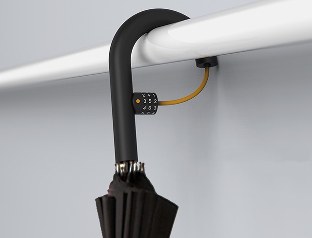 不能避免每个人都有道德,笔者反正没丢过伞,可能是伞比较丑,一般都是自己遗忘了。但是相信大部分人应该都丢过,而且不止一把。设计师聚集在一起,设计了这个带密码锁的遮阳伞,通过手柄拉出延伸,锁在任何栏杆或者家具之上。