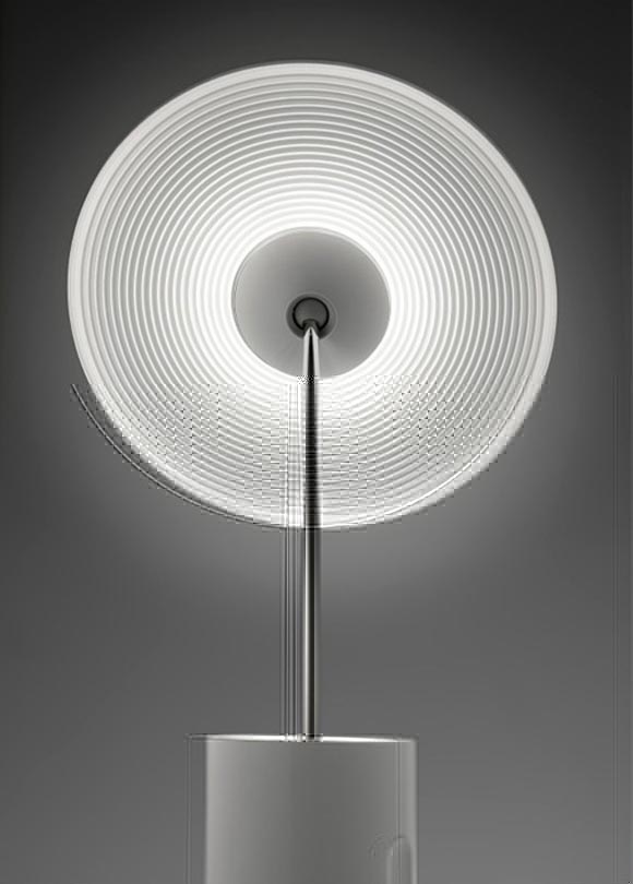 这款灯是设计师Justin Marimon和Scott Wilson为灯具品牌Artemide设计的,其主要目的是提高LED的利用效率,最大程度地节约光亮用于需要照亮的地方。顶部的LED灯被嵌到一个圆盘里面,密集排列,这个圆盘可以轻松优雅地呈现360°旋转,且照明范围很大,被照亮的地方也会得到充足的光源,底座是一个圆柱形,可以减小占地面积,适合放在书桌上、床头上等比较小面积的地方。