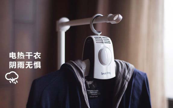 原理类似类似吹头发的出风机,外观做成了衣架的样子,通过两根导管将热风吹到悬挂的衣服被形成循环气流,加快干燥。请点这里了解或购买