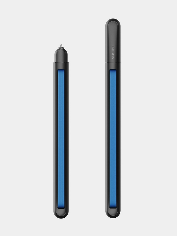HUG 书写工具自带了一根有弹力的松紧带,这样你便可以将它牢牢的固定在本子上,而且还能够帮你合拢本子。整个造型和功能也是设计的十分巧妙完全不会影响书写时的舒适程度,细节可以说美到爆。