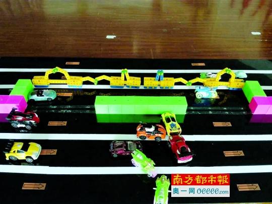 根据他们的设计模型,隔离带的改造并不需要大规模的动工,在拥堵黑点的隔离带上更换新的隔离装置,这个隔离装置是可以拉伸的。平时这个隔离装置就跟现在石头隔离带装在一起,使用时才移动到对面道路,拉伸后拼接起来形成一个新的隔离带。