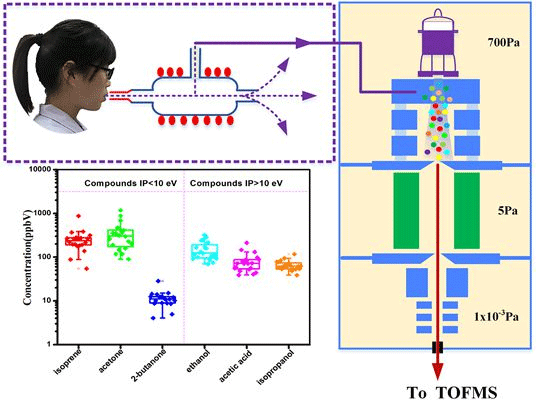 高通量呼出气体分析检测新方法呼出气体的分析和检测,作为一种新型的临床辅助诊断手段,在医疗诊断领域具有广阔的应用前景。人体新陈代谢的部分产物由血液运送至肺部,在肺泡通过气体交换出现在呼出气体中。呼出气体反映了机体的代谢和病理状况,一些物质甚至可能成为某种疾病的生物标记物,如:烷烃类是氧化应激的标志物、丙酮是糖尿病的生物标志物。近年来,在气道慢性炎症、肺癌、肺结核、肠病、肝硬化、乳腺癌、胃管-食管癌等疾病中利用呼出气体检测来寻找特异性标志物的研究越来越多。李海洋研究团队利用高气压下的真空紫外灯(VUV)光电离结合飞行时间质谱技术(HPPI-TOFMS)分析人体呼出气,在1分钟的采样时间内实现了对人体呼出气中丙酮、异戊二烯、二甲基硫、乙醇、乙酸等物质的高灵敏检测。在100%相对湿度条件下,该方法能够实现浓度低至几十pptV挥发性有机物(VOCs)的直接在线检测,且对苯系物、呋喃类、含硫和含氮化合物具有超高的灵敏度和选择性,这在污染暴露分析、职业病防治等领域具有重要的应用前景。相对于其它呼出气检测方法,该技术的最大优势在于受湿度干扰小,特别是针对相对湿度高达100%的呼出气检测这一大难点,成功消除了各种除湿方法不可避免会造成衡量待测物损失的不足。 近年来,李海洋研究团队始终关注呼出气体检测的新技术和新方法研究:开拓了将离子迁移谱(IMS)技术应用于麻醉剂分析检测的“动态-稀释新方法”,并受到国际学术界同行的认可。团队还通过与哈尔滨医科大学第一附属医院合作,成功将IMS仪器应用于手术过程中病人呼出气体中麻醉剂丙泊酚的在线监测,为精准麻醉提供了重要保证。此外,该研究团队还应用IMS技术实现了重要的呼吸道炎症生物标志物NO的高灵敏检测,与常规的化学发光和电化学传感器技术相比,IMS用于NO分析具有简单、快速的优势。呼出气体检测具有非侵入性、无损伤、取样方便、可连续采样等优势,是分析化学和医学领域的新课题,仍需探索更多更新的分析仪器和分析方法。HPPI-TOFMS应用于人体呼出气分析,简单、快速、无需任何前处理,有望成为一种高通量的疾病筛查工具,并可用于临床上大数据样本分析,而且低成本、高通量、大样本数据的积累有利于发现新的疾病生物标志物。(中国经济网 记者佘惠敏)