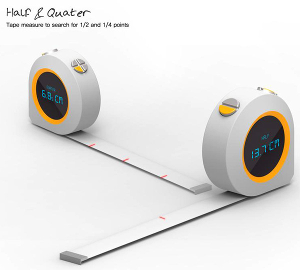 一把好的卷尺可以帮助设计师和工程师极大的提高工作效率,工业设计师 Hoe Yeong Jung 的这款卷尺设计概念产品 Half & Quarter 配有显示屏,它能够更加直观的实时的显示出实际测量结果,从而不必我们去仔细看尺上的刻度。另外,在卷尺拉出的长度固定后,内部的 LED 灯带还会自动用红色刻度线为您标注这段线段中的“中点”和“四等分点”。