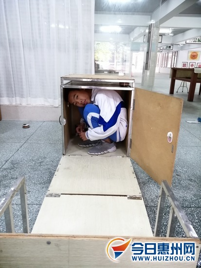 可防地震、可当书桌使用、可当床使用……一款由惠州市第一中学初中部八年级(6)班学生汤宝杰发明的防火防震多功能课桌日前在第十届国际发明展览会亮相,获得评委们的一致认可,荣获大会金奖。