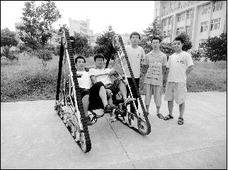“该车在外观设计、整车技术上有明显创新和突破,改变了传统的休闲运动自行车以前轮导向、后轮驱动的行走方式,能强化训练双人配合与操作的技巧,有利于休闲运动和健身益智”,指导老师之一王为说,如果将该产品转化为成果,不仅方便旅游观光,更能够促进我国健身休闲运动器械的发展,带动经济和健康发展。