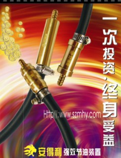 安得利强效节油装置是由公司总部台湾研制开发,深圳生产。所有主要部件直接由台湾进口, 安得利强效节油装置主要的原材料有纳米复合材料,稀土金属钕(Nd)、金属元素铁(Fe)和非金属元素硼(B)(少量添加镝(Dy)、铽(Tb)、钴(Co)、铌(Nb)、镓(Ga)、铝(Al)、铜(Cu)等多元素材料组合成。产品利用钕超导体磁性频率共振技术,产生特定的共振频率,当燃油通过安得利强效节油装置时,节油装置内部多重磁力作用会破坏流过的燃油分子的碳氢链,使燃油结构分子在特定的共振作用下重新排列,原来燃油分子紊乱无序的运动排列变为整齐有序的运动直线,促使燃油充分有效的完全燃烧。尤其是该产品的所采用的SN磁力技术应用,属国际先进水平,它不仅延长了燃油被磁化的过程,使其分子结构更小,并能够长时间保持有序排列,极大程度地提高了燃油的燃烧效率,同时内部高科技超强催化装置还可以明显提高燃油的热效率,从多个方面达到节油目的。具有节油效果显著、增强动力、防止和清除缸体积碳、降低有害气体排放等功能,并且可以极大程度地改善车况,延长车辆使用寿命,产品广泛适用各种燃油车。安得利强效节油装置技术参数: