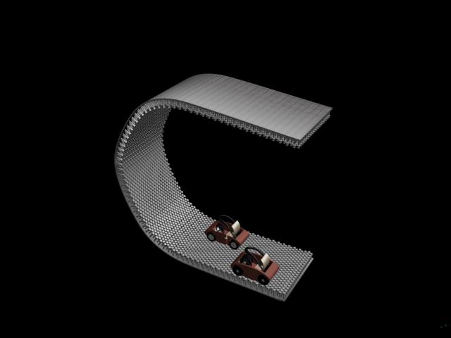 技术领域:本实用新型技术涉及一种可在水平车道、倾斜车道、倒立车道上运行的新型的游乐赛车系统,可以当成自主驾驶的过山车。背景技术:游乐赛车是游乐园里很常用的游戏项目,目前市面上常见的游乐赛车基本都在水平地面或者轨道上运行,其趣味性和刺激性还可以进一步提升,市场上需要一种能在不同车道上运行的游乐赛车。实用新型内容:本实用新型由于车道是由均匀分布的上大下小形状钢柱构成,车道连接器底部被卡在车道内部,可以实现赛车在倾斜车道和倒立车道上不会脱落,赛车后轮提供前进动力,前轮提供左右转向,带动车道连接器下部橡胶滚柱在车道缝隙间运动,可以实现赛车自由运行。此外车道连接器下部套一个橡胶滚柱,可以使运动时减小碰撞力,车道连接器顶部安装三个回位弹簧,可以使车道连接器摆动之后及时回到中心位置,保险杠为车手在倾斜车道和倒立车道上提供安全保障。所以可使得赛车在任何道面上自由运行都不脱落。(附3D图)市场前景:如果能在全国大城市的大型游乐园内建大型的此游乐赛车项目,在全国地级市的中型游乐园或者公园内建小型的此游乐赛车项目,在县级及以下单位建设路边或者广场此游乐赛车项目,每年产品需求预计销售10000余套此游乐赛车。投资及销售:批量生产1辆电动此游乐赛车所需成本2000余元,建设中小型生产厂预计100万元,建设大型生产厂预计1000万元,如果每辆车销售价格预计5000余元,成本在2000余,年销售10000辆的话,年收益可想而知。专利情况:正在申请中联系人:卢瑞手机:13649379635QQ:277504483专利转让金额:100万合作投资金额:100-1000万