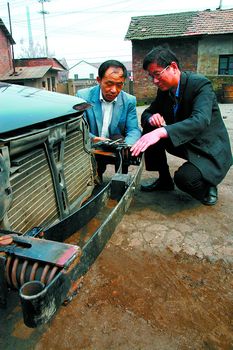 图为省、市车辆技术专家在现场做实验技术鉴定。刘炬摄 本报湘潭讯 昨日上午,一场特殊的撞车实验在湘潭市举行。随着两车相撞和“砰”的一声,一项名为“轿车隐形防撞保险杠”的专利实验获得成功。现场专家称,该专利保险杠的技术性能可将轿车的直接碰撞力降低60%~80%。