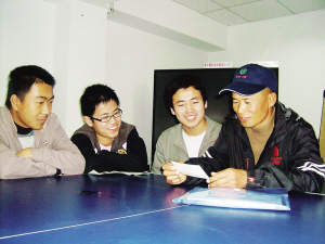 付立国(右一)正在和学生交流发明心得(钟秋 摄)