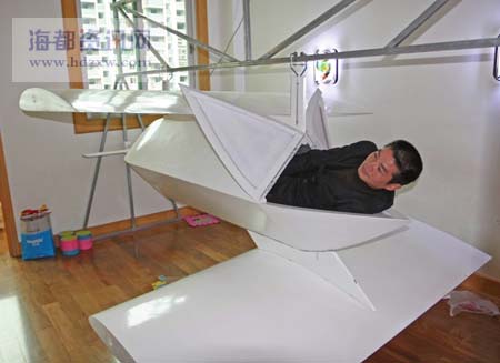 陈鸿友是一名医生,今年43岁。他说自己从小就喜欢做航模,上初中时物理特别好,以前就和同学发明过一些小东西。2005年,医院安排他到福州进修,福州拥堵的交通状况让他感触颇深,“有段路,步行只要半小时,可因为拥堵,我在车上却坐了快一个小时。”陈鸿友开始琢磨,“如果能发明一种在低空飞行的低成本飞行器,不就可以解决交通拥堵吗?”