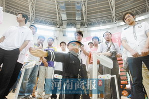 在终审作品展示会上,郑州轻工业学院学生创作的交通警察很受关注。它能模仿交警指挥交通,还可根据道路运行情况,控制通行时间,还能自动抓拍违规车辆。 大河网-河南商报