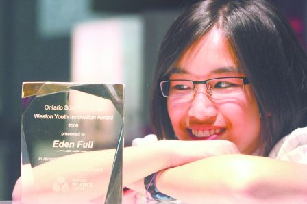 中新网5月31日电 据加拿大《明报》报道,加拿大一名华裔女生日前凭借发明一台名为Dynamic Photovoltaics太阳能发电系统,勇夺全国科学发明比赛冠军。 在加国出生,住在卡加利,就读12班的华裔女生符芳颖(Eden Full)自小对科学甚感兴趣,9岁开始已在科研领域充满热情。凭着简单低成本的物料──钢和铝,配合其它非污染性简单器材,符芳颖发明一台名为Dynamic Photovoltaics太阳能发电系统,参加本年度安河自然科学馆连同The W. Garfield Weston Foundation合办的Weston Youth Innovation Award全国科学发明比赛中脱颖而出,勇夺冠军。