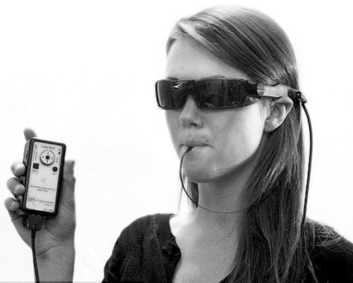 这个装置外形像一副太阳镜,连带着细细的电线和一个“棒棒糖”式的塑料棒。该装置通过直径为2.54厘米的微型摄像机拍摄图像,然后将图像信息传输到一个手机大小的便携式控制装置。接着,控制装置将数字信号转换为舌头可感觉到的电脉冲。