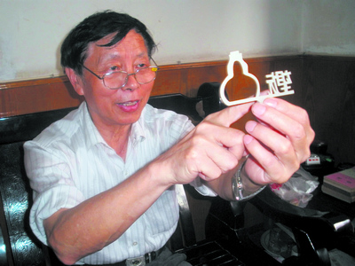 据星辰在线-长沙晚报6月23日报道 (记者 张水湘)手持一个特制的纸质模型,左边是“恒”字,右边是一个心形图案,伸直手臂,目光从模型旁边穿过,聚焦在50米处的物体上,直视几秒钟后,视线余光中的“恒”字就印入“心”形之中,成为“恒心”非常有趣。株洲硬质合金集团退休物理老师阳自祥发明的这套玩具,已经获得了实用新型专利。 钻研八年发明出防近视玩具