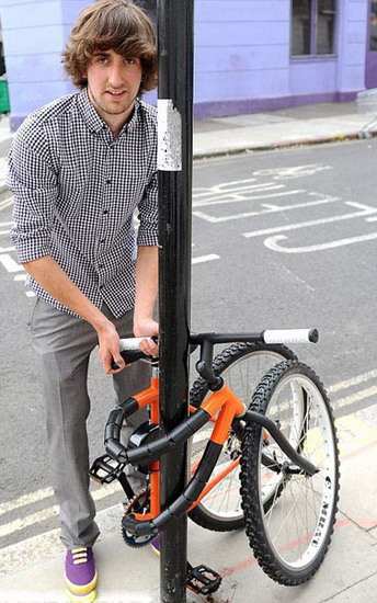 据英国《每日邮报》7月8日报道,英国一位年轻设计师发明了“弯曲自行车”,它能够很好地防盗,因为该自行车可以折叠捆绑在街道路灯杆上。 这位年轻设计师现年21岁,名叫凯文・斯科特,他设计的这辆“太空时代自行车”可以弯曲捆绑在路灯杆上,在不需要附加任何锁和链条的情况下就可以安全防盗。在发明弯曲自行车过程中,斯科特的目标是确保自行车所有部件都能在上锁范围之内。因为车身可弯曲,所以该自行车可以放在极小的空间里,这样,在伦敦繁忙的街道找个地方锁车就是一件轻而易举的事了,找个最近的路灯杆就可以。