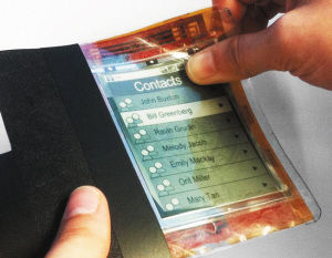 中广网北京5月9日消息 据中国之声《新闻纵横》报道,在加拿大,研究人员发明了一种新型的最轻薄的手机。这种手机就像是一张纸一样,厚度跟一张信用卡差不多。它的触摸屏不是玻璃,而是一种超轻薄、可弯曲的“薄膜”。这种“纸手机”不仅能拨打电话、发送短信,还能储存电子书和播放音乐等,也可谓“纸电脑”。