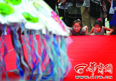 昨日,两名小朋友被环保时装秀吸引 本报记者 李晖摄“山青青、天蓝蓝,绿色三秦好家园……保护环境代代传……”昨日上午9时30分,伴随着省环境监测中心站工作人员演唱的《陕西省环保之歌》,由省环保厅和华商报社、华商网联合举办的“绿色接力播种未来”世界环境日系列活动的高潮活动——陕西省纪念世界环境日主题活动,在西安市新城广场如期举行。 多项主题活动宣传环保