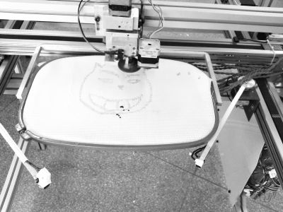 右图:“十字绣机器人”正在绣制图案。吴雷提供