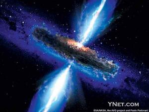 我要发布信息 | | 欧洲科学家发现宇宙黑洞数量远多于估计数(图) | 2004/06/08 |  | 德通社5月27日报道,由天文学家保罗·帕多瓦尼为首的一些欧洲科学家,利用欧洲南部天文台、哈勃天文望远镜、钱德拉望远镜等设备观测到的资料,在一个比较小的宇宙空间新发现了30个质量巨大的黑洞,从而推断,宇宙中黑洞的数量可能是现在科学家估计的2倍到5倍之多。 由于黑洞能把靠近它的包括光线在内的几乎所有物质都吞进自己的内部,所以天文学家不能看到它们,只能根据它周围星尘和气体的变化,来判断它的存在,就像人们看不到旋风,而是根据它卷起的灰尘推断它的存在一样。如上图所示,在一个星系中的黑洞被一个由星尘和气体组成的形如油炸面圈的环面所包围,当黑洞吞噬周围星尘和气体时,它将这些物质极大加热,并使部分物质沿着星系的旋转轴方向喷射出来,就如图中蓝色所示的那样。科学家根据这些观察就能断定黑洞的存在。 |