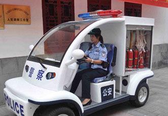 记者10日从南京市公安局秦淮公安分局获知,《变形金刚3》热映后,南京夫子庙派出所的民警从“大黄蜂”的变形上找到了灵感,发明了新式警用巡逻车,巡逻车可集消防、巡逻为一体。目前,新车已在景区亮相并“服役”。 这辆新型改造车外观与电动巡逻车无异,但后排4人座改成了2人座,配备有小型水箱的消防设施,有4个大型灭火器、救生绳、消防斧、消防水管、防火毯、小型水箱、各类消防栓的扳手,可谓“麻雀虽小五脏俱全”。