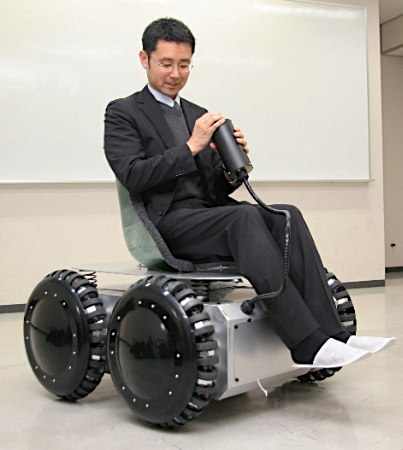 中新网3月22日电 据日本新闻网报道,日本京都大学研究生院副教授小森雅晴开发的一种新型的移动车,今(22)日在京都大学公开。